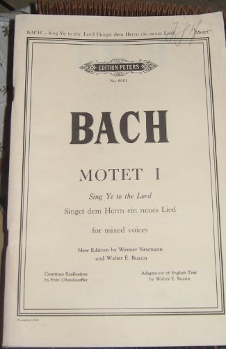 Product description: Bach Motet 1, Sing Ye to the Lord, Motets for Mixed Voices Continuo realization by Fritz Oberdoerffer. Adaptation .New urtext edition with German and English words by Werner Neumann and Walter E. Buszin published by Edition Peters, No. 6101 Vintage score in excellent condition 90 pages 09 Box 2 motet bag Condition:Used; Good manufacturer:1959 format:paperback subject_keyword:'bach', 'the', 'lord', 'sing', 'mote'