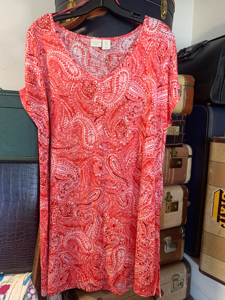 Check out other items for combined shipping! 1X St Tropez West Womens Shirt Top Red Pink Paisley Short Sleeve Stretch Rayon Plus VGC