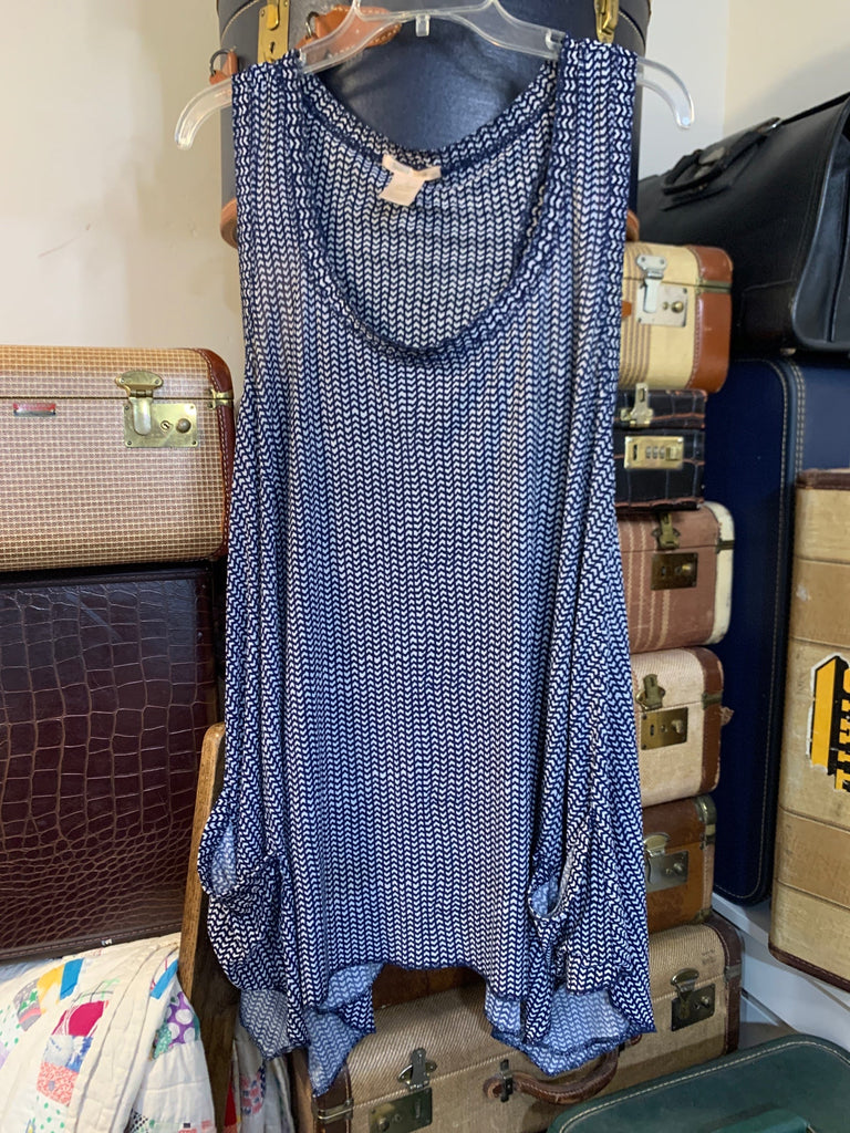 1X Sweet Juliet Womens Shirt Top Navy Stretch Sleeveless Long Plus VGC