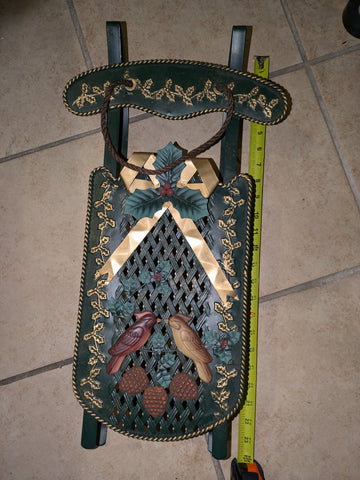 23" Decor Metal Sled CARDINALS Bird Kiss In Love Pinecones