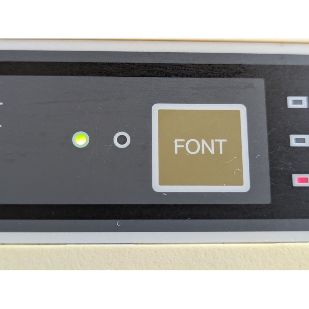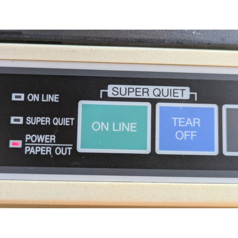 Panasonic KX-P2023 Quiet Dot Matrix Printer 24 Pin offers reliable and efficient printing. Features include multiple font settings, quiet printing mode, and sturdy vintage construction. Successfully blends performance with retro aesthetics. Production code visible: S3080414. Made for heavy-use environments, it’s an excellent example of durable, vintage printing technology.