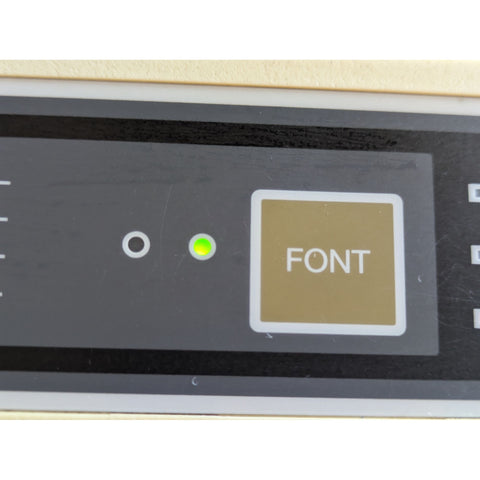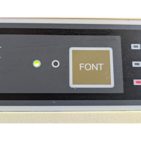 Testing was not connected to PC. Does power on / off, Feed works. Font buttons tested, both off, both on, right on, left on, left blink works; to pick font setting. (See video)