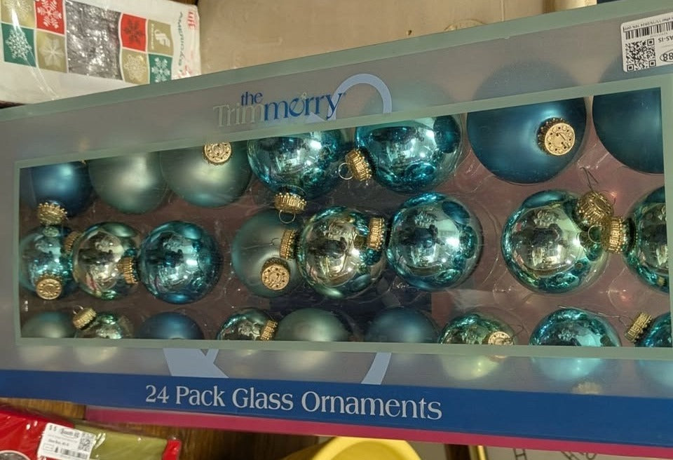 24ct Blue TRIMMERRY SOLID COLOR 2" ROUND GLASS CHRISTMAS TREE ORNAMENTS
