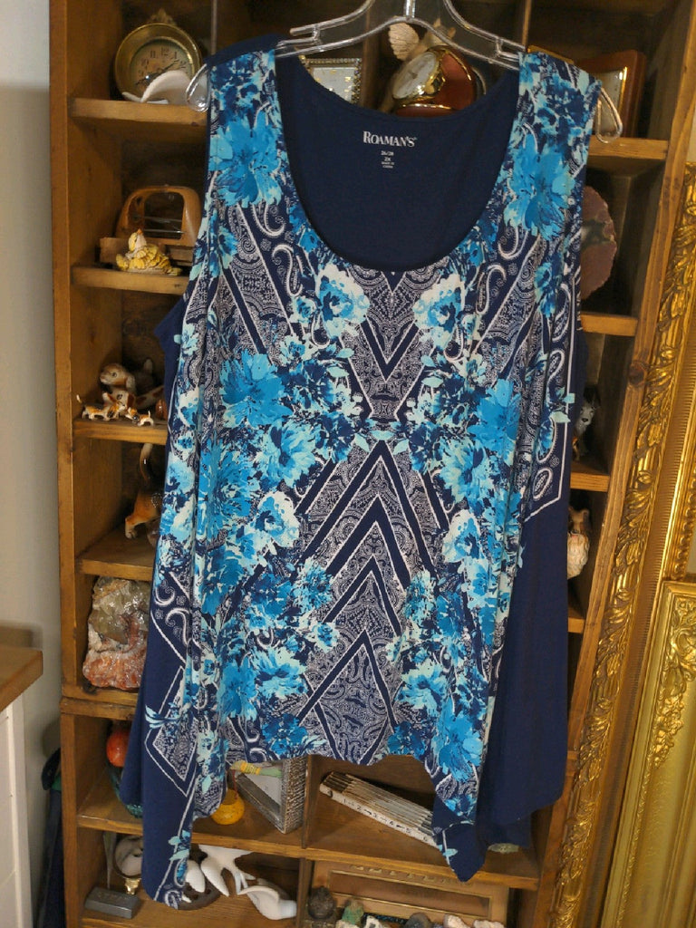 We can ship this item. 26/28 Roamans Womens Shirt Top Floral blue boho Plus Used This is marked size 2X which is a 26/28 in this Brand.