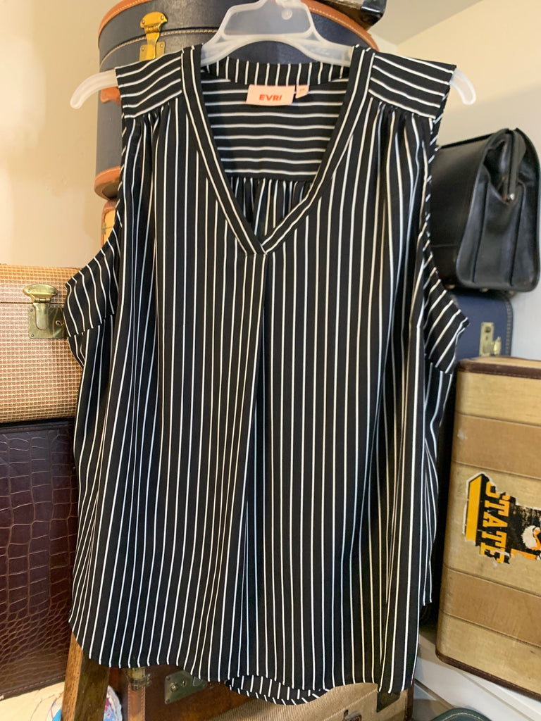 Check out other items for combined shipping! 2X Evri Womens Shirt Top Black White Striped Sleeveless Plus VGC