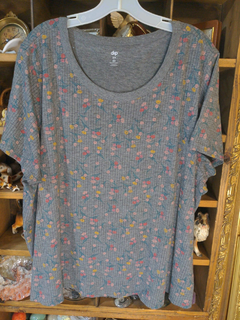 3X Dip Womens Shirt Top Floral Gray print Plus Used