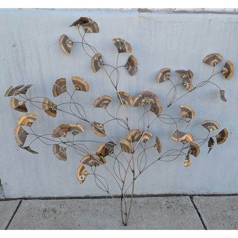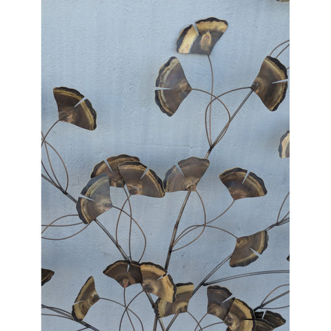 MCM Large Mid-century, Modern Re-Issue, Brutalist Signed Curtis Jere Brass Ginkgo / Ginko Branch Tree Leaves Wall Sculpture