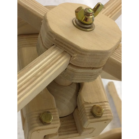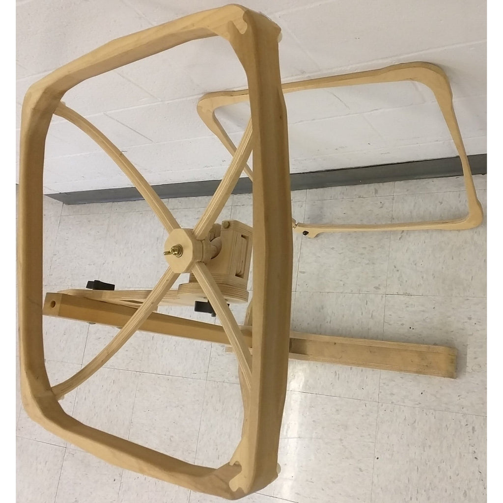 This comes apart and can be folded into a four layer compact form for storage or shipping. All plywood construction.