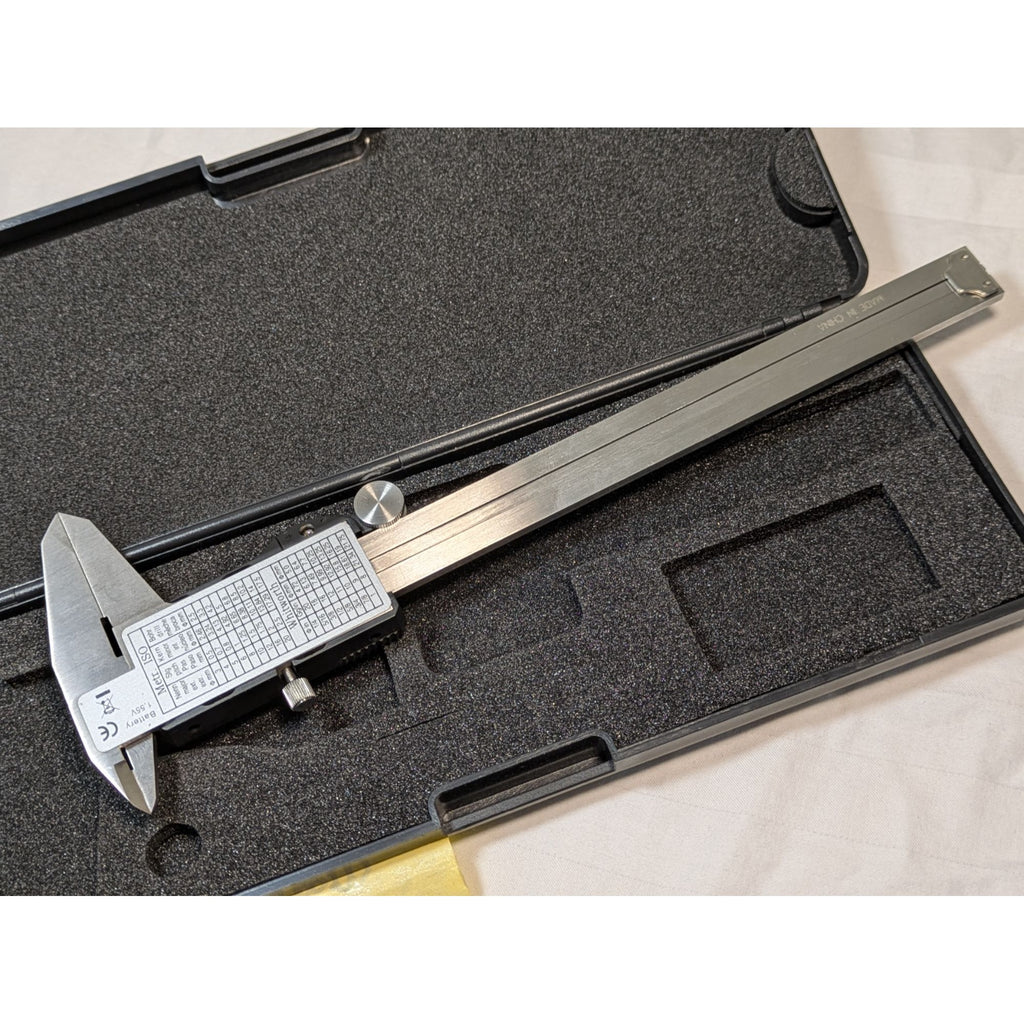 This electronic digital caliper offers 0-150mm range precision for accurate measurements. Constructed with stainless steel for durability, it features an easy-to-read digital display with inch/mm conversion. Comes in a custom protective case with a conversion chart on the back for practicality.