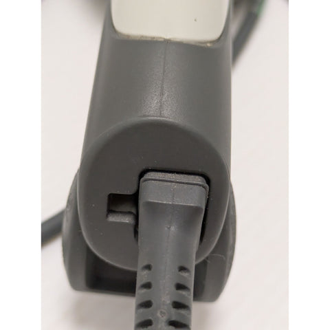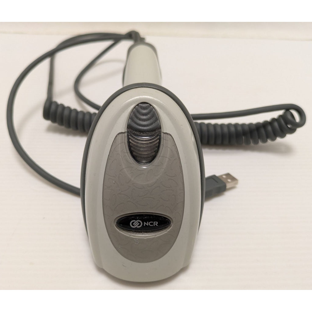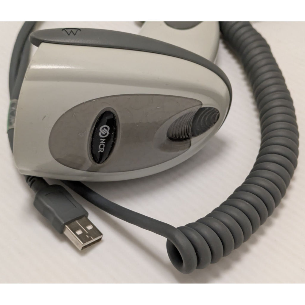 This NCR Symbol DS6707-SR barcode scanner, manufactured in 2012, is equipped with a coiled USB cable for dependable connectivity. Constructed with durable gray plastic, it offers precision scanning for inventory management and retail environments. In working condition and made by Symbol Technologies Inc., it ensures high performance.
