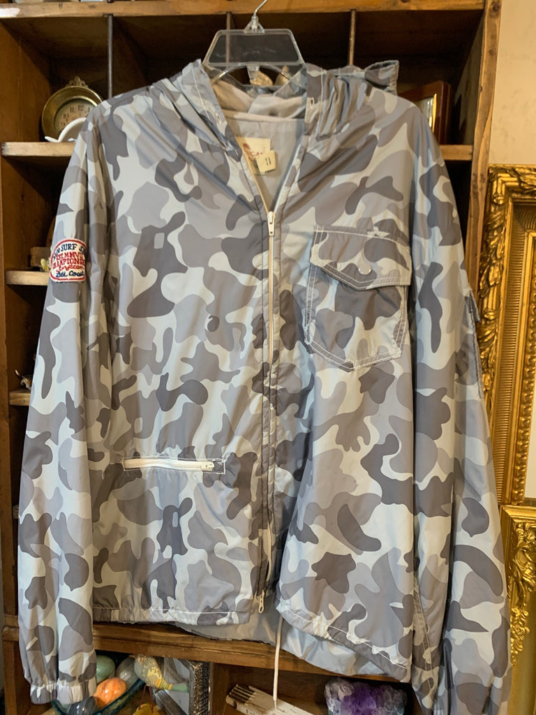 Check out other items for combined shipping! L American Living Mens Coat Jacket Gray Camo Alco surf shop patch Zip Regular VGC