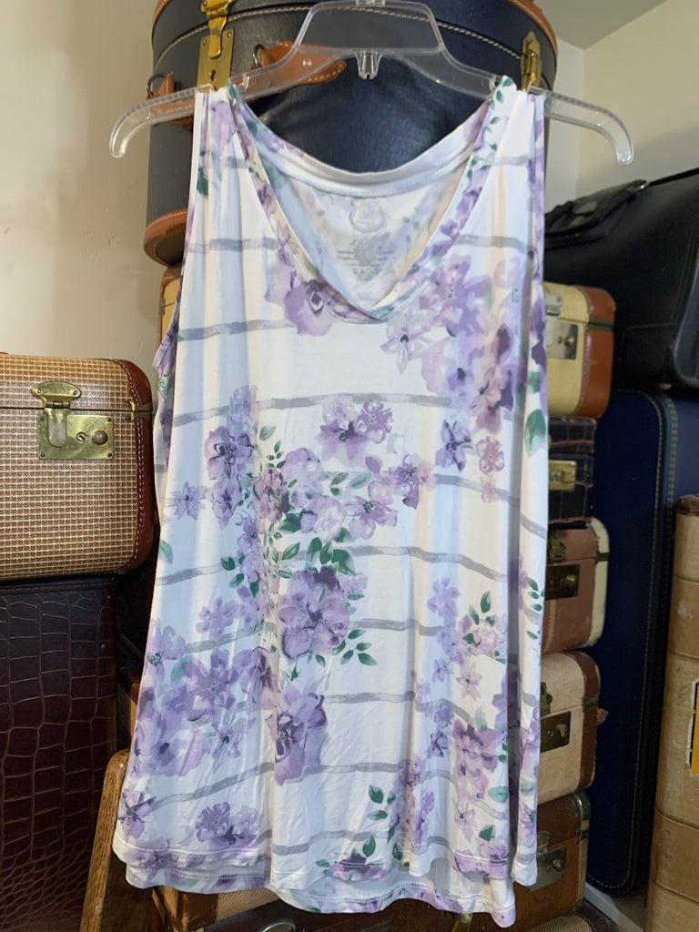 L Maurices Womens Shirt Top Lavender Floal Stripes Sleeveless Stretch Regular VGC