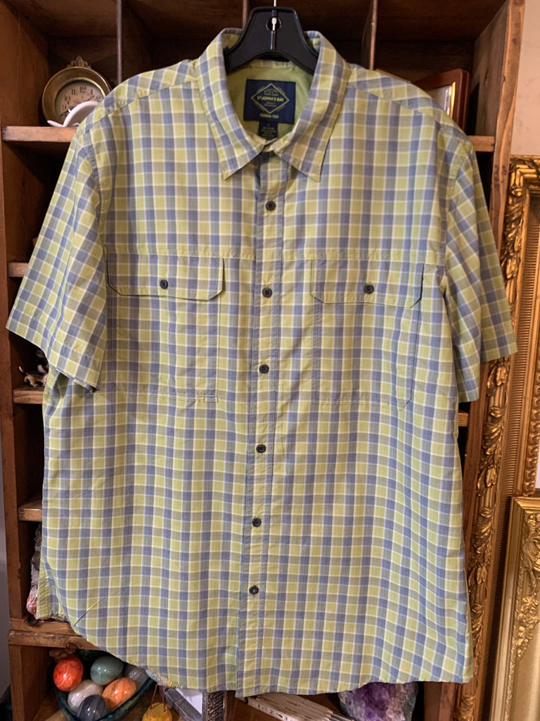 Check out other items for combined shipping! L St Johns Bay Mens Shirt Top Green terra-tek short sleeve button up plaid Regular VGC
