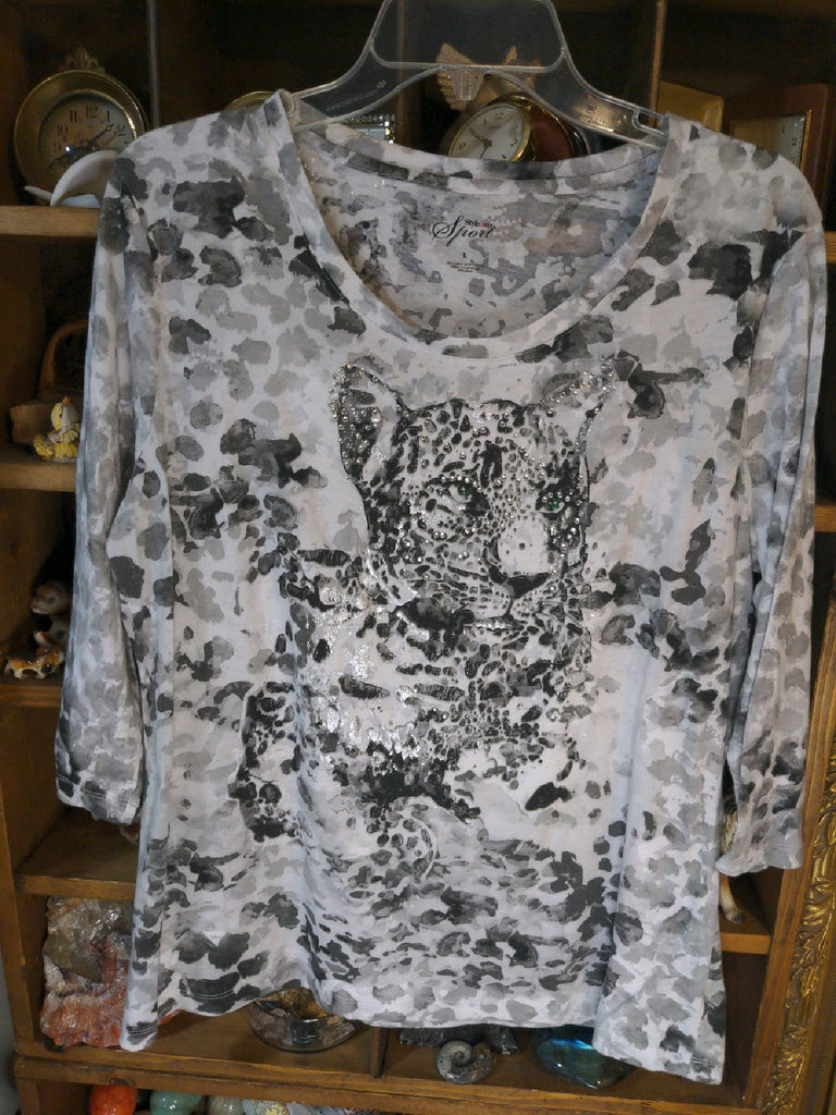 We can ship this item. L Style&Co Sport Womens Shirt Top Cheetah leopard animal print Bling Regular Used