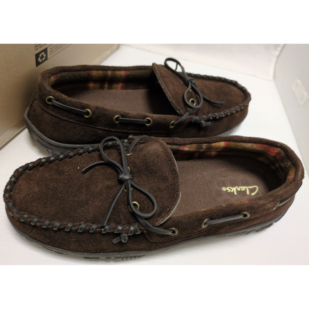 NEW 10 M Clarks Indoor/Outdoor Slippers Brown Suede Slip On Boat Shoes Mens Trapper Moccasin Lined JMH0675