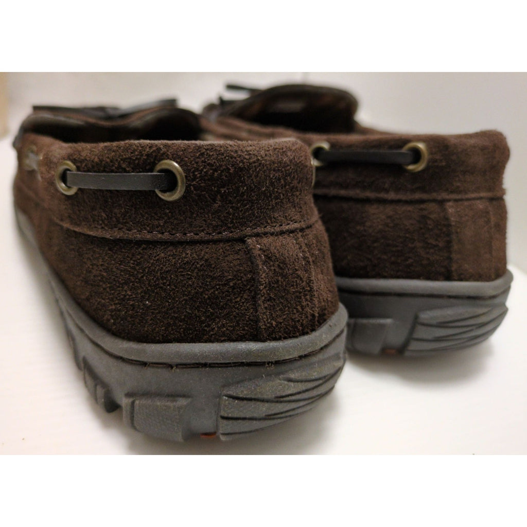 NEW 10 M Clarks Indoor/Outdoor Slippers Brown Suede Slip On Boat Shoes Mens Trapper Moccasin Flats Lined JMH0675 Driveway Deck Moc