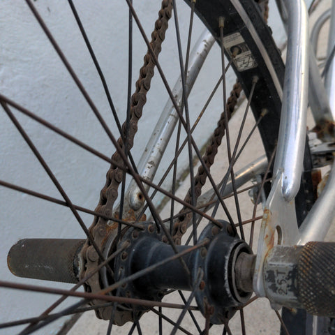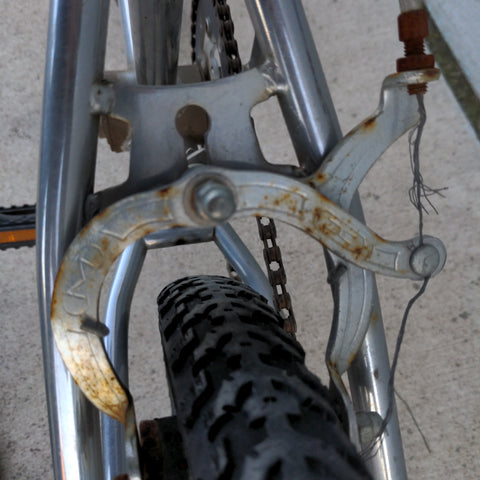 Bike is fairly heavy for its size. Some surface rust. Needs full restoration/cleaning. Needs new tires and tubes, needs new brake cable. Etc. Nick on front of seat and edge rubbing. Needs new grips, old ones are Scott Brand. Tires are flat and sidewall cracking, did not try to fill with air.