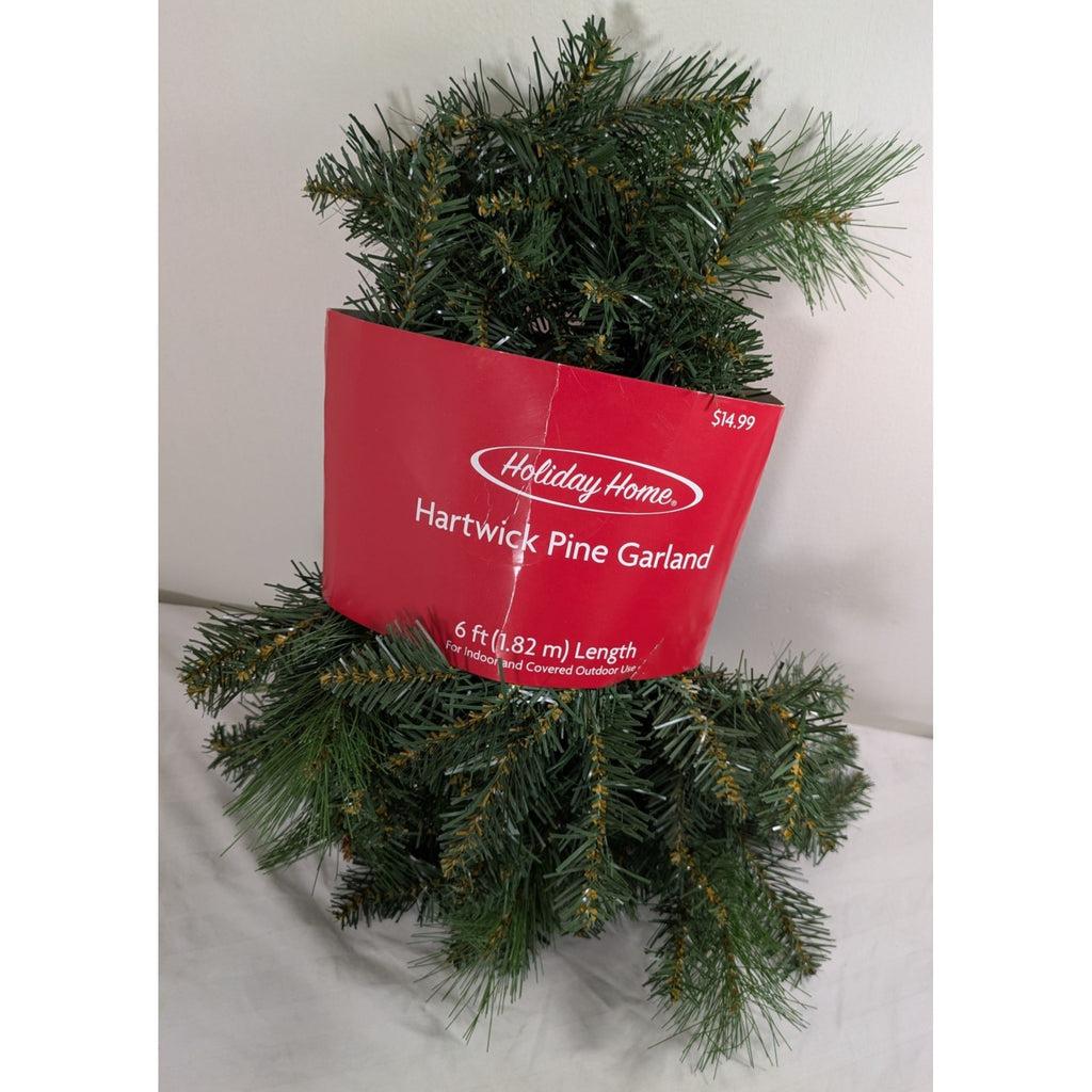 This 6-foot Holiday Home Hartwick Pine Garland is ready for your decorating magic! Strong, green, and fabulously plastic – it's like training-wheels festive, ready to shine indoors or under a covered outdoor scene without needing water, sunshine, or charm school. Practical and hassle-free reusability guaranteed.