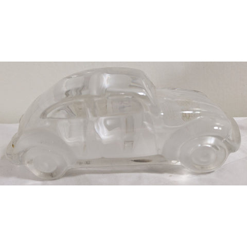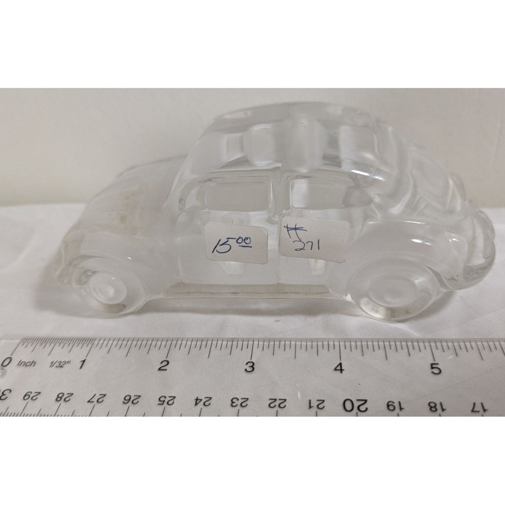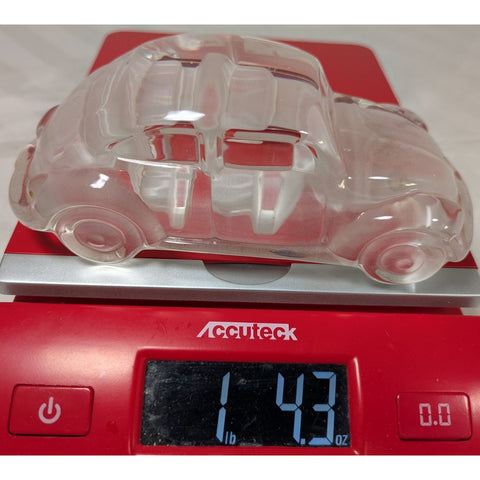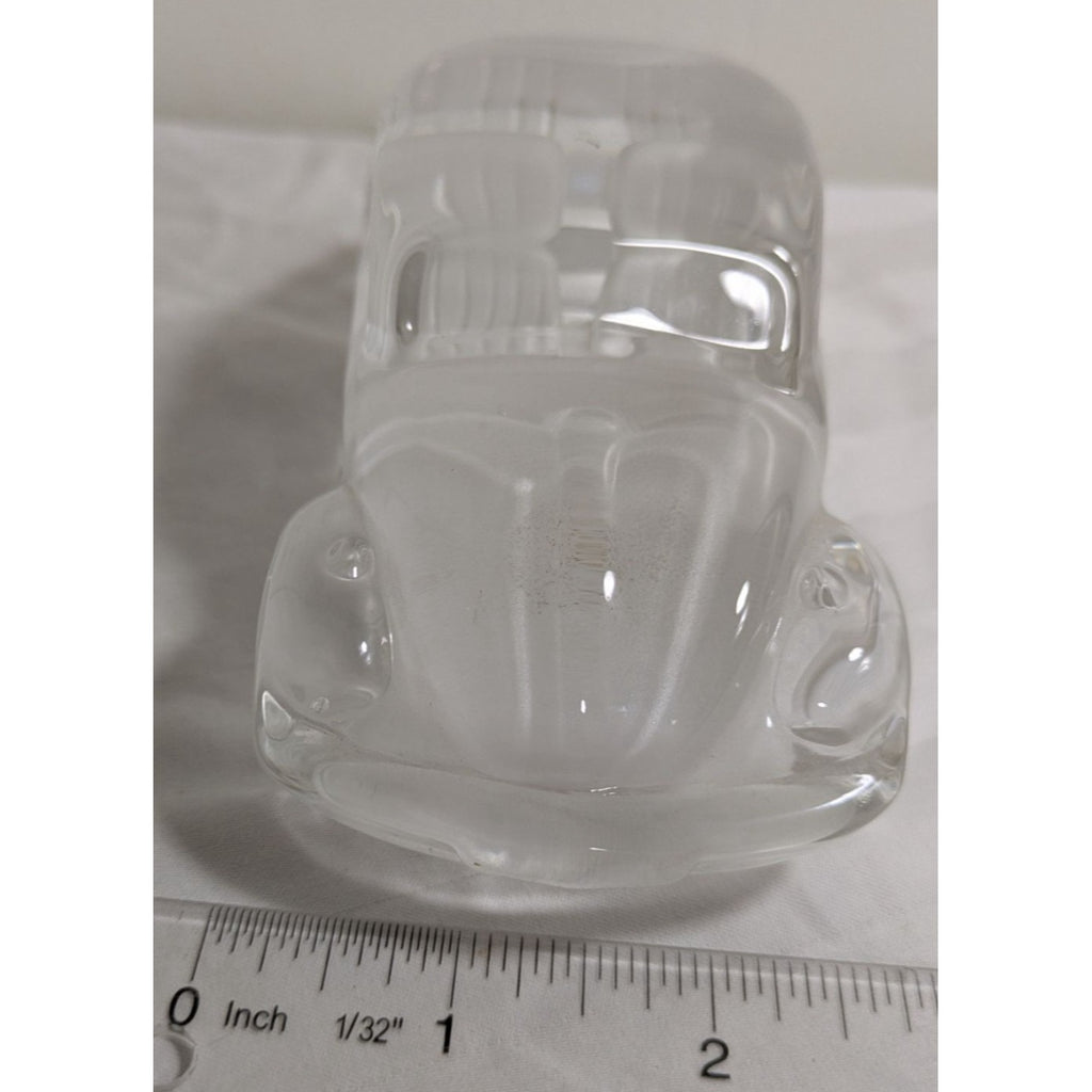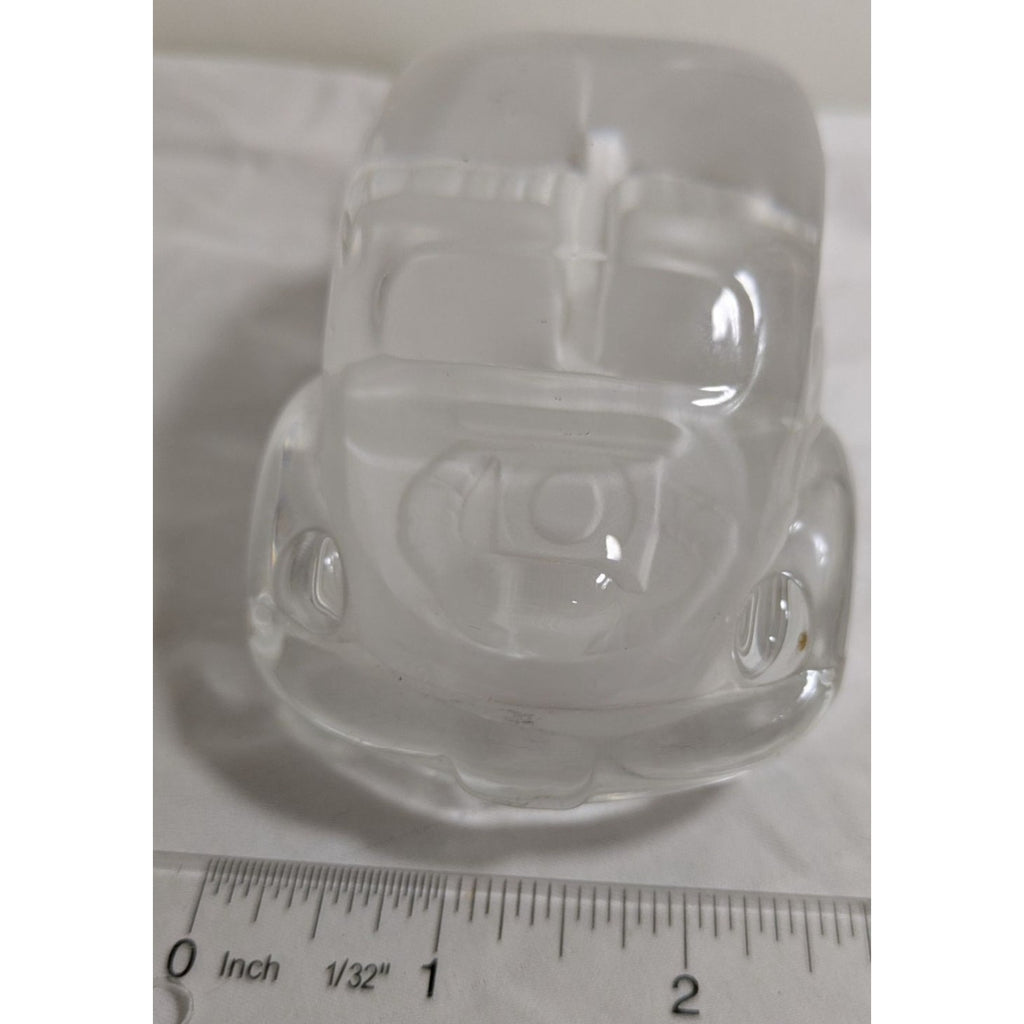 6"L x 2.5"W x 2"T Clear Glass VW Bug Paperweight 1990s Car Beetle Volkswagen Figurine Decor Crystal