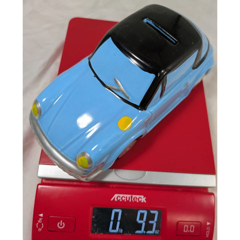 Why save coins in an ordinary jar when this speedy ceramic car piggy bank is ready to vroom into action? Whether you’re saving for some wheels or just your morning coffee, this 7.5” blue and black beauty adds character to any space while keeping your change secure. Slight paint chips give it that "well-loved" road trip vibe.