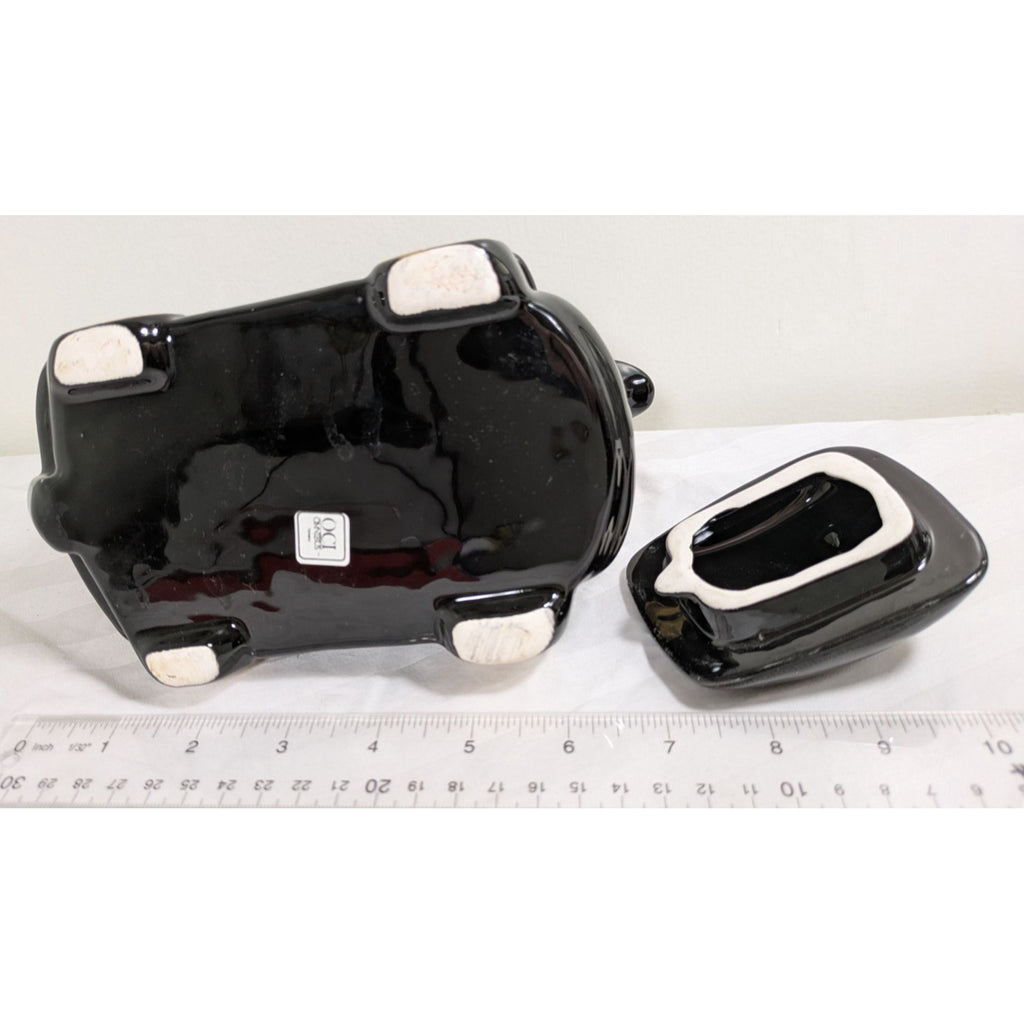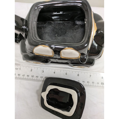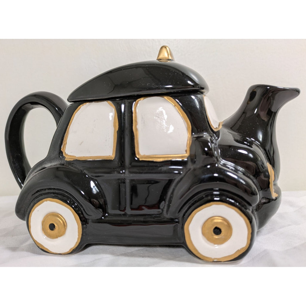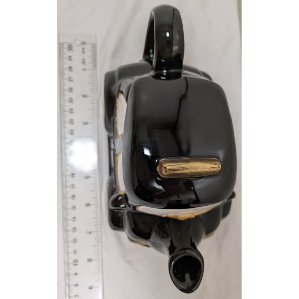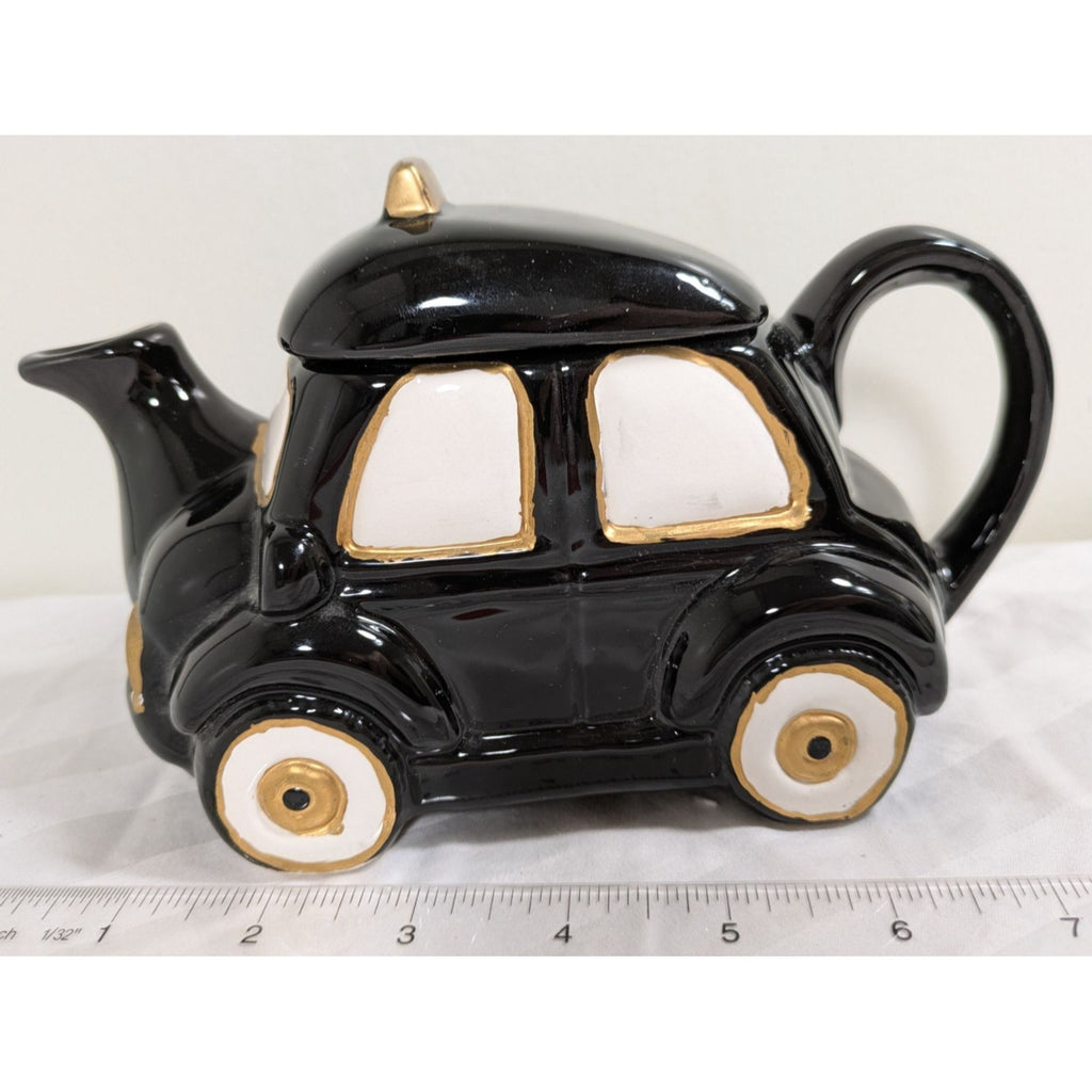 7" Teapot Car VW Bug Inspired Black Taxi Cab Ceramic Gold-Trim OCI Omnibus Taiwan Beetle