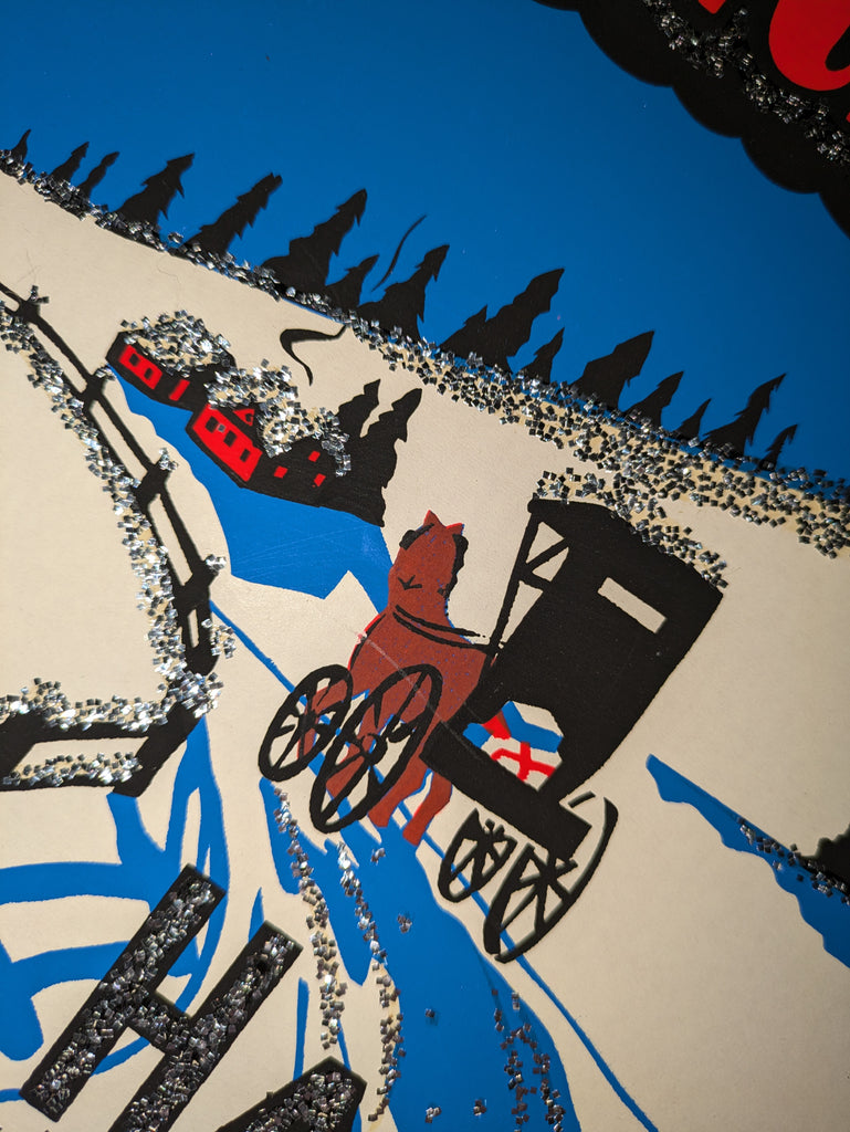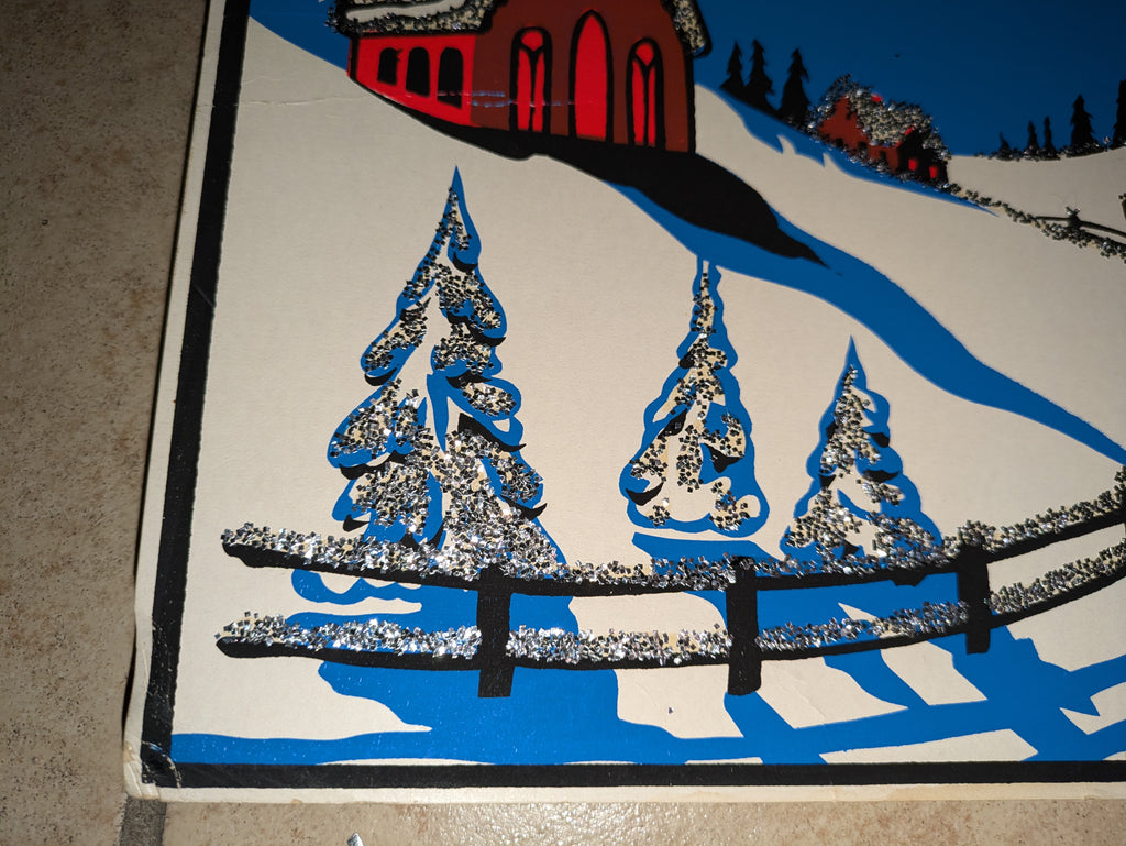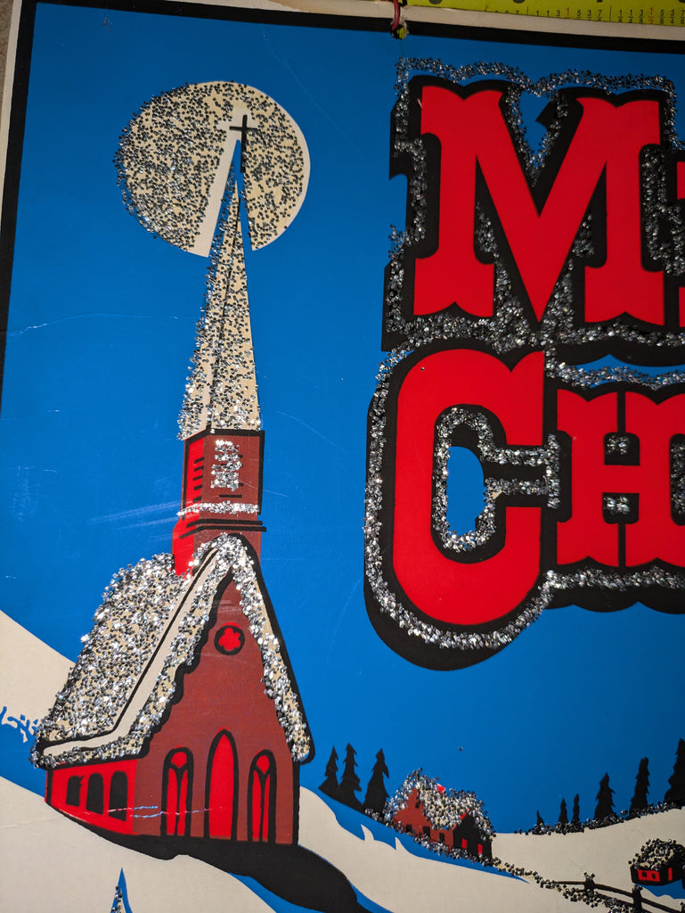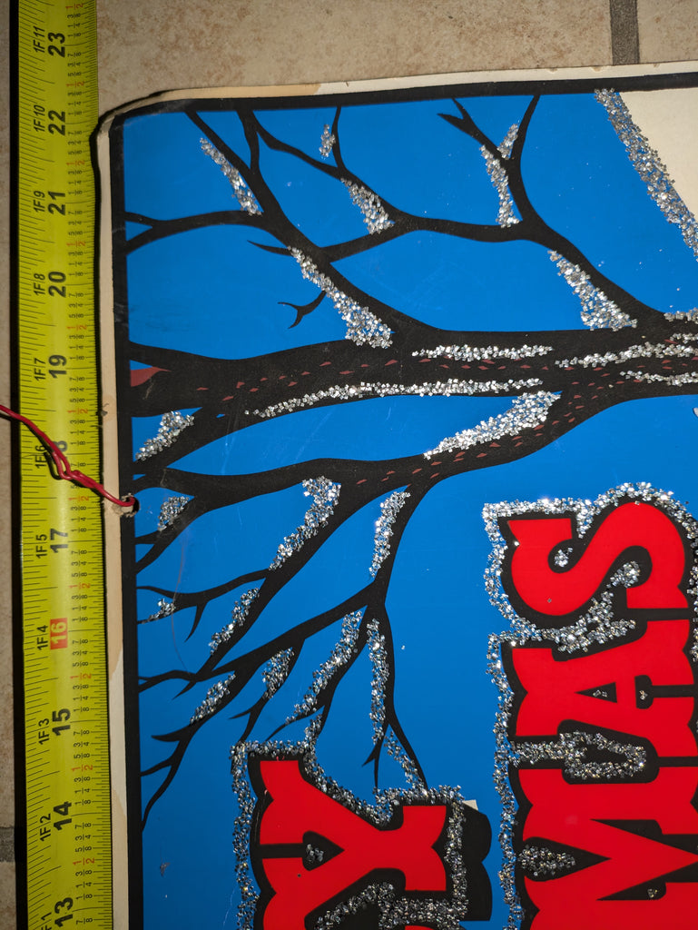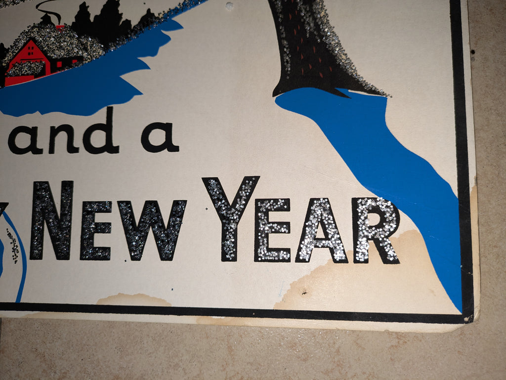 22" OLD Cardboard Store Sign Glitter Merry Christmas Happy New Year Vintage