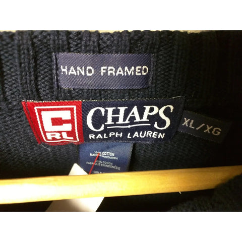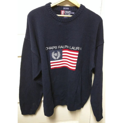 XL USA Flag Ralph Lauren Chaps Spell Out Knit Pullover Crewneck Sweater VTG 90s-2000s Emblem Cotton