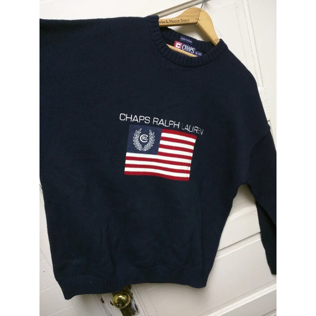 This sweater screams 'Murica! Bold, patriotic, and a little mysterious with a light discoloration that’s probably debating whether to leave or stay. Crafted from soft cotton, this Chaps Ralph Lauren piece is ready to turn heads. Flag pattern, iconic branding, and 100% hand-framed sass included.