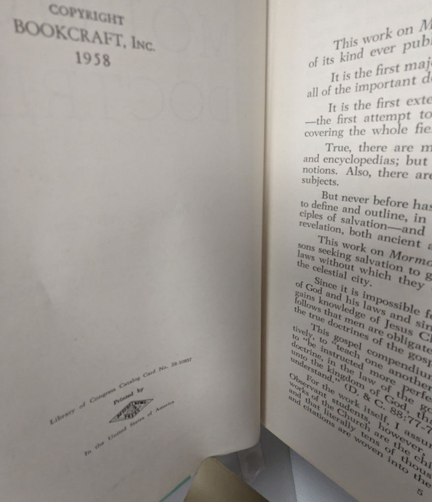INNER HINGE SPLIT before title page, not detached. Lower Far Corner HEAVY WEAR. True First Edition First Printing. 1958 no other dates. Fair, Loose hinge, name on inner cover. Much Rubbing to cover and spine. Combined shipping + 0.99/LB on additional media. Inside pages Not Graded. Book LDS Format: Hardcover Language: English subject_keyword:'LDS', 'religion', 'spirituality' product_description: Religious, Spirituality, LDS, Mormon