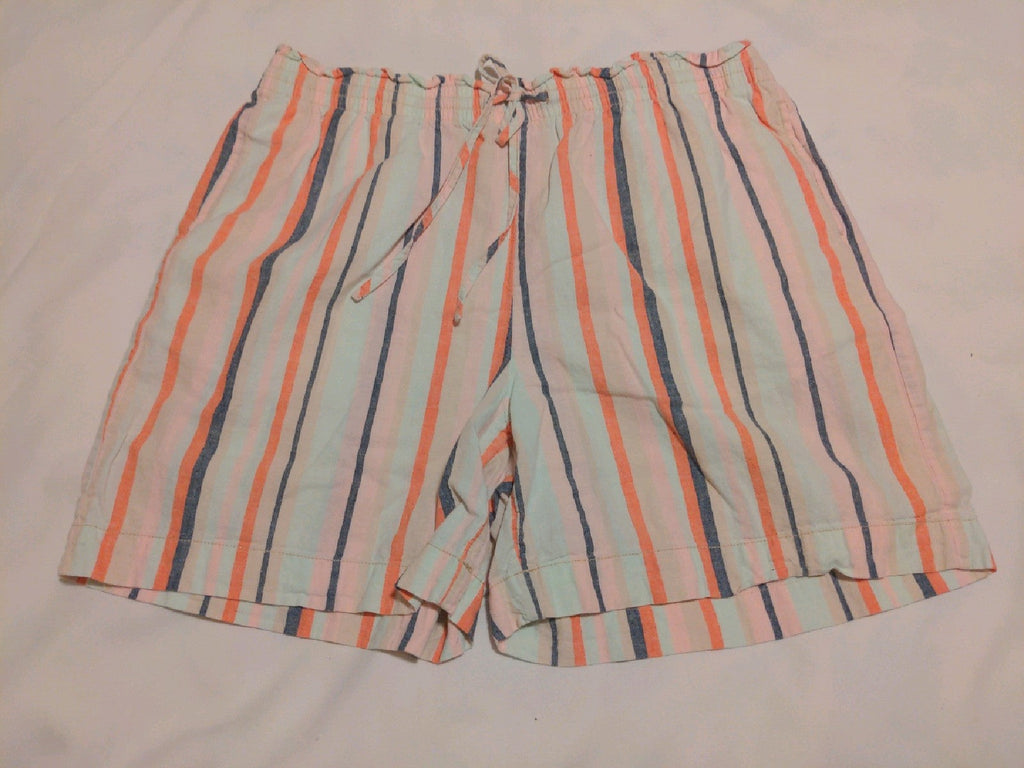 14 Terra Sky Womens Shorts Multicolor stripes pink black elastic waste with tie white Used