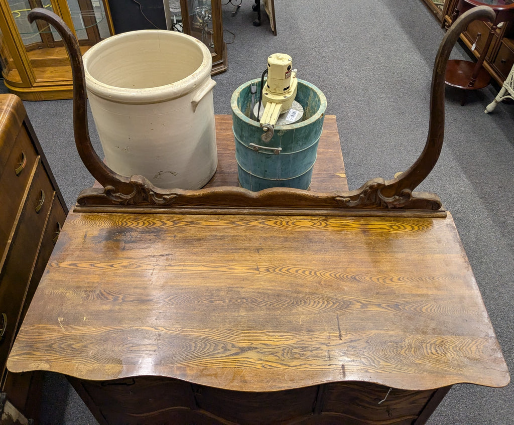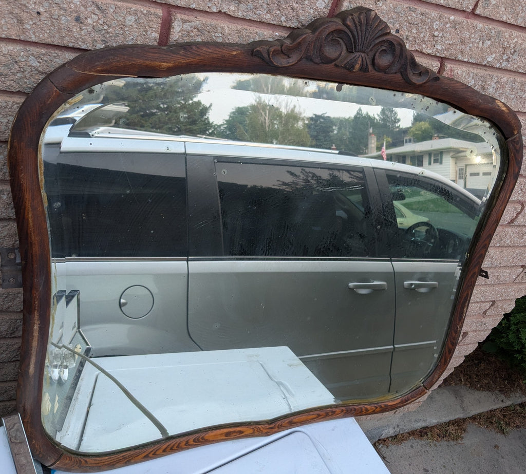 Mirror (No photo), is included but one side of frame broke off and needs glued/repaired. It does have the wood frame that holds the mirror to the dresser, it also may need a little work or one metal hinge maybe missing.