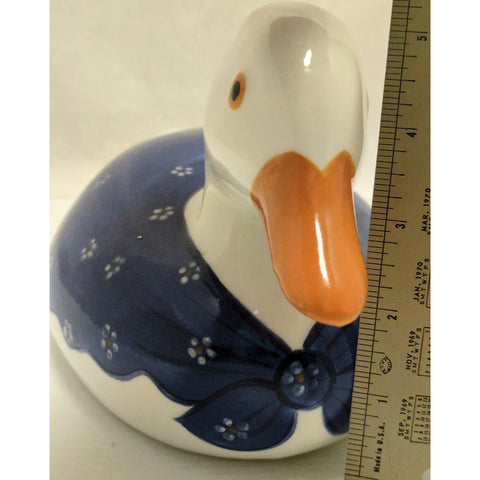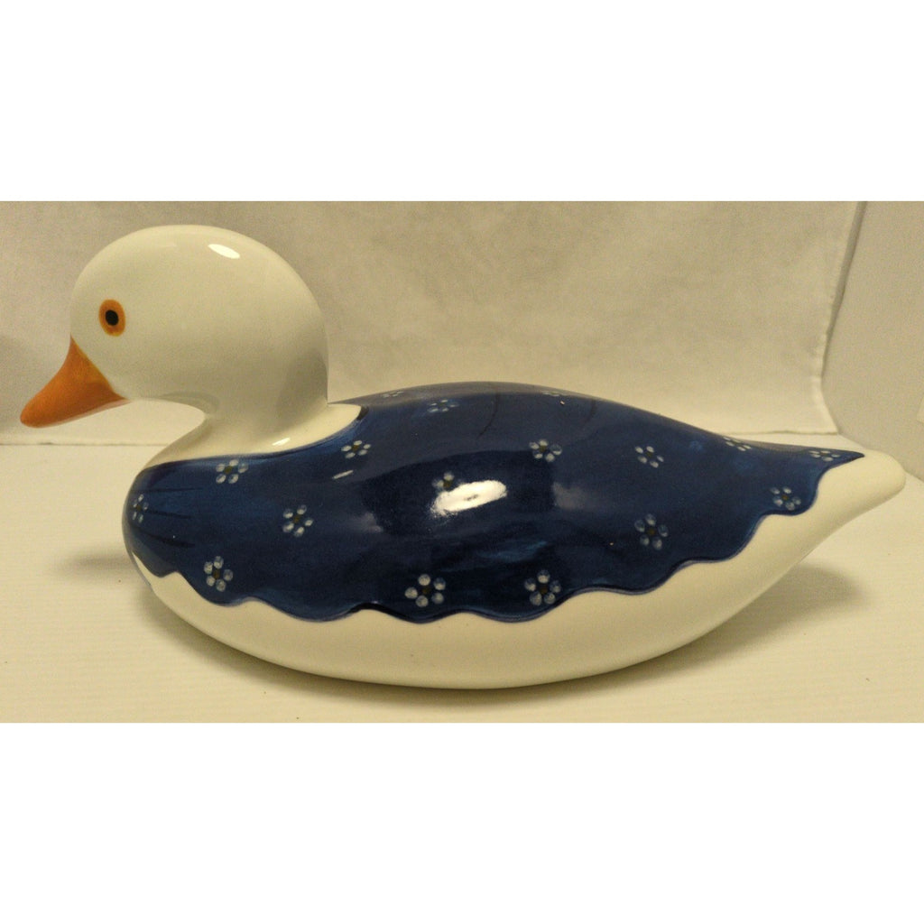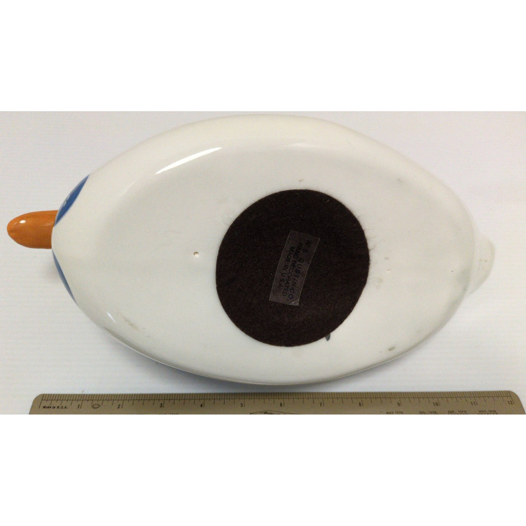 N.S. Gustin Co Large 12.5" DUCK Porcelain Pottery Hand Painted Ceramic Made in USAVery good conditionThis company has a series of dishes that kind of match this duck.Duck Only. Blue White Porcelain CeramicK240801018