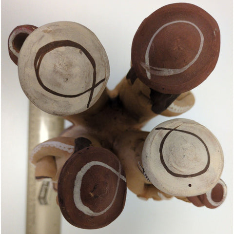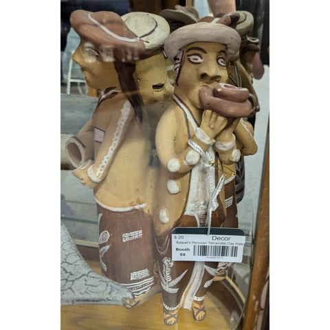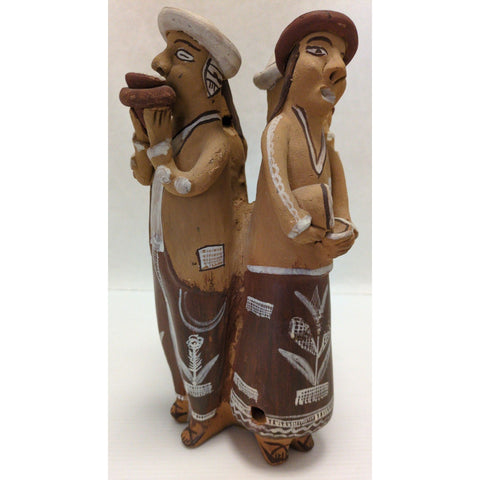 10" Two Indian Couples Raquel’s Peruvian Andes Terracotta Clay Pottery Whistle Folk Art Collection Figurine