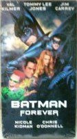 Product description: Amazon.com Review: When Tim Burton and Michael Keaton announced that they'd had enough of the Batman franchise, director Joel Schumacher stepped in (with Burton as coproducer) to make this action-packed extravaganza starring Val Kilmer as the caped crusader. Batman is up against two of Gotham City's most colorful criminals, the Riddler (a role tailor-made for funnyman Jim Carrey) and the diabolical Two-Face (Tommy Lee Jones), who join forces to conquer Gotham's population with a brain-draining device. Nicole Kidman plays the seductive psychologist who wants to know what makes Batman tick. Boasting a redesigned Batmobile and plenty of new Bat hardware, Batman Forever also introduces Robin the Boy Wonder (Chris O'Donnell) whose close alliance with Batman led more than a few critics to ponder the series' homoerotic subtext. No matter how you interpret it, Schumacher's take on the Batman legacy is simultaneously amusing, lavishly epic, and prone to chronic sensory overload. --Jeff Shannon UPC:085391510130 Condition:Used; Good binding:VHS Tape genre:Action & Adventure manufacturer:WARNER BROS