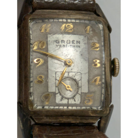 AS-IS 1944 Gruen VERI-THIN 17J 435 Swiss 10KGF Mens Tank Watch