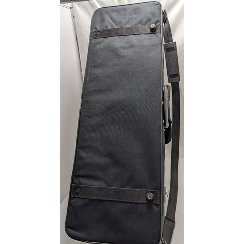 Missing one string. Case has zipper that only works from one direction, but does close and hold. Case also missing two of the feet pads.