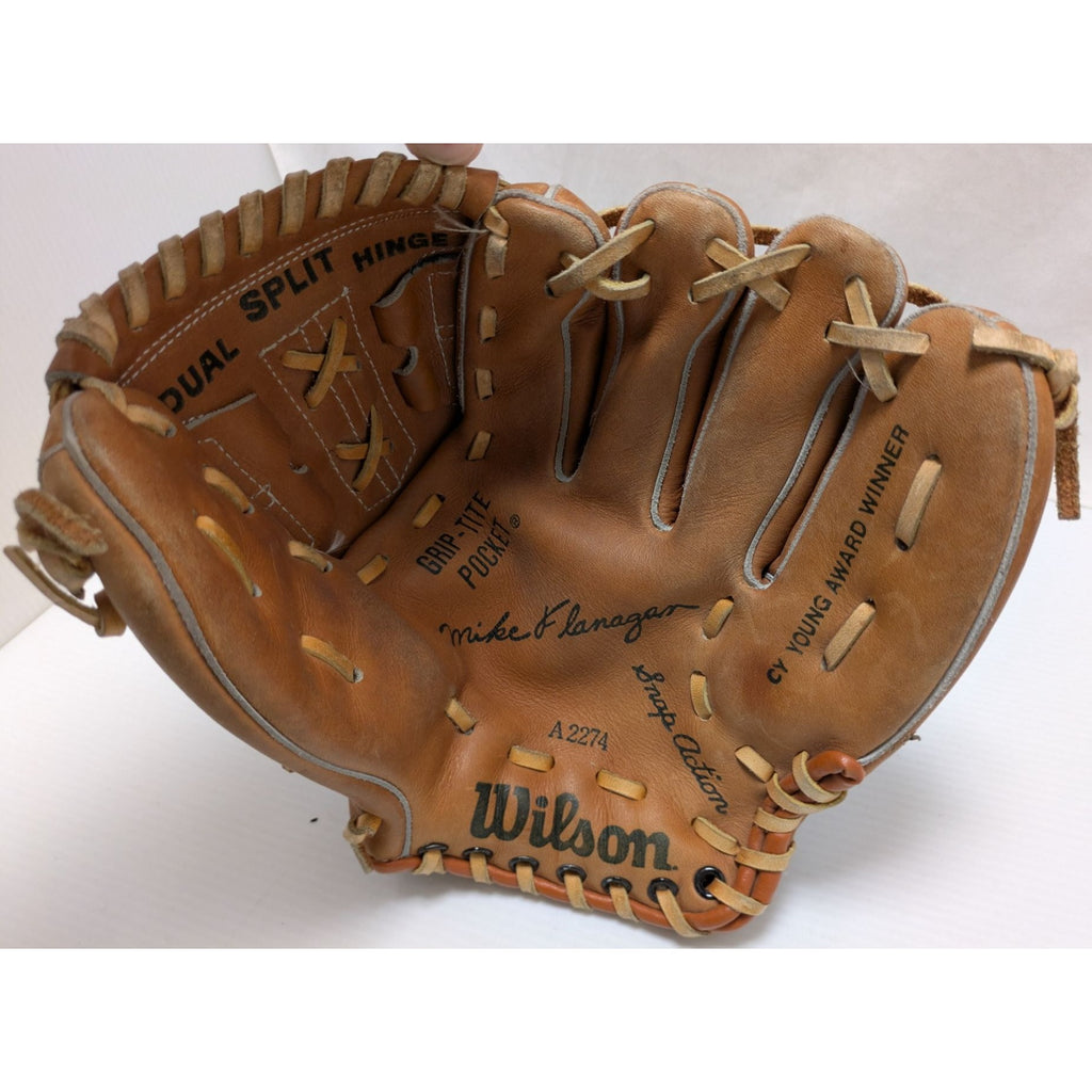 10" Mike Flanagan A2274 Wilson Baseball Glove Leather Cy Young Award Winner Youth Endorsed Grip-Tite Pocket Dual Split Hinge
