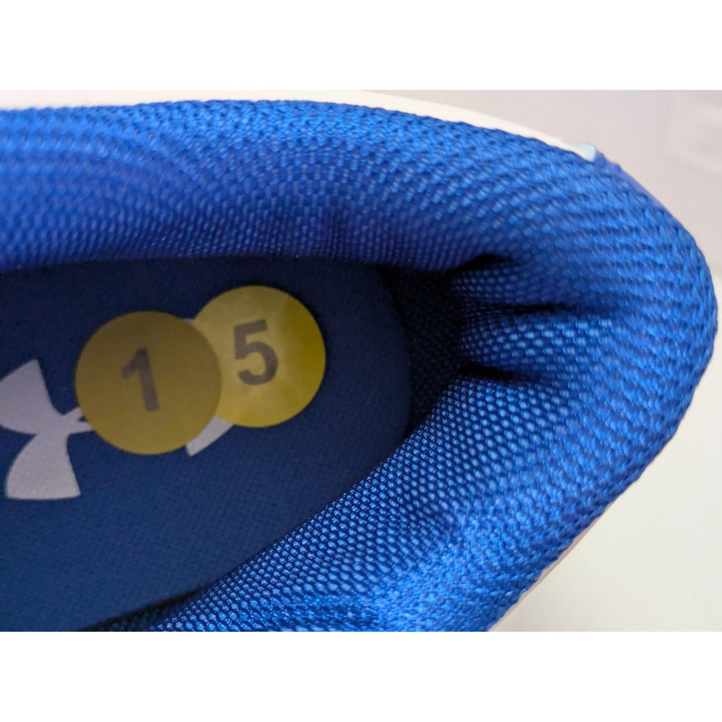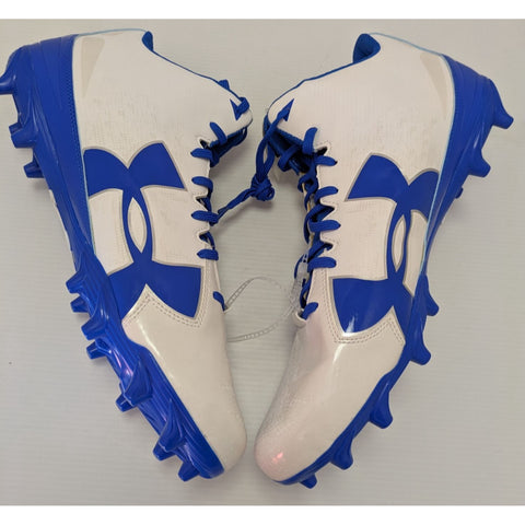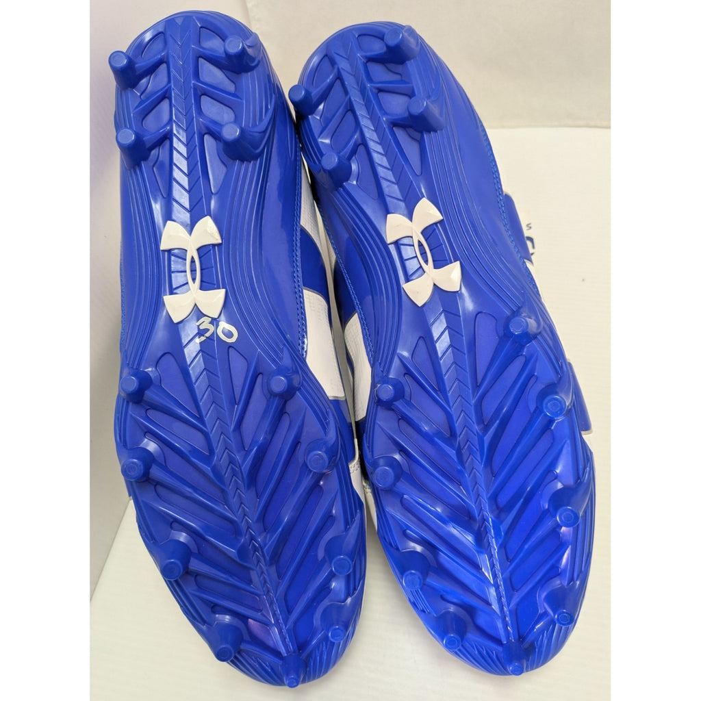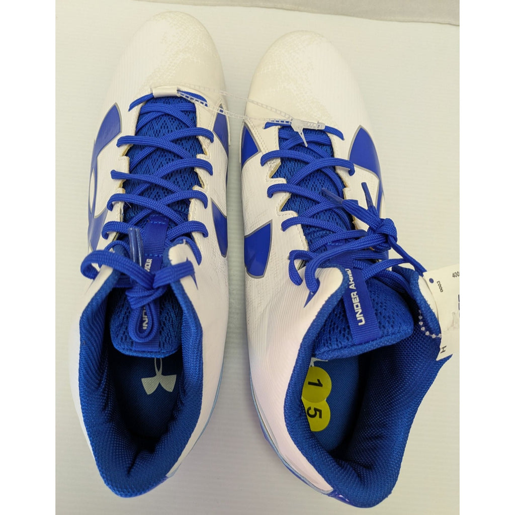 football cleats men, Under Armour shoes, size 15 cleats, royal blue cleats, sports footwear, turf cleats, new football gear, synthetic upper shoes, durable cleats, athletic footwear men, Under Armour performance, breathable cleats, white blue cleats