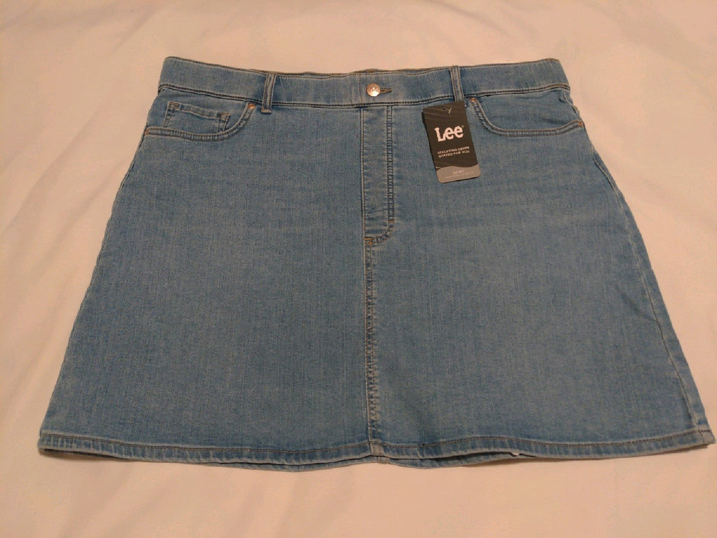 20 Lee Womens Skirt Light blue slim fit high rise denim Plus New