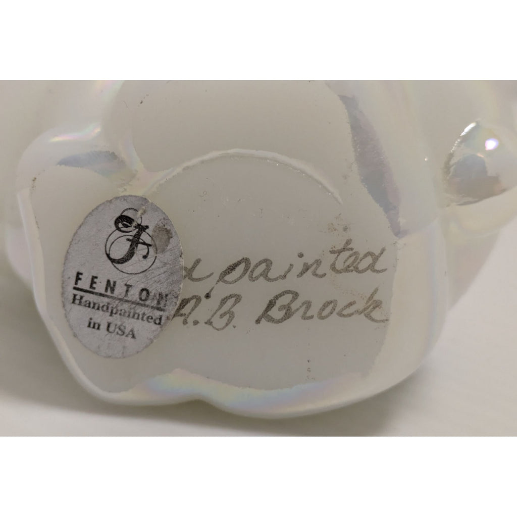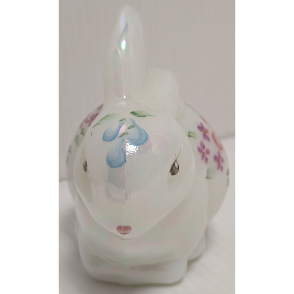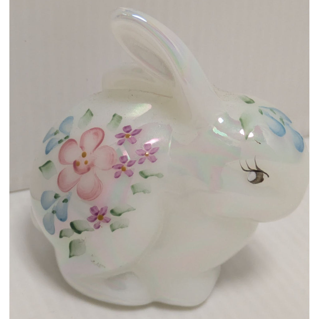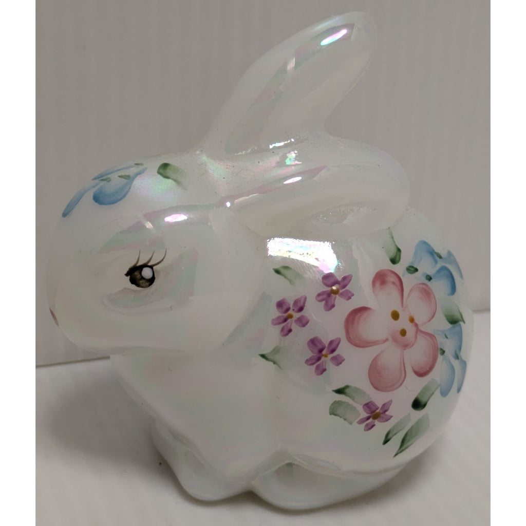 This adorable Fenton bunny looks like it hopped straight out of a fairy tale, dressed in the finest spring blooms. Its handpainted floral design is basically the bunny fashion equivalent of haute couture. Measuring 3 inches tall, it's as lightweight as this bunny’s chances of avoiding compliments. A collectible so charming, it might convince your other figurines to organize a welcome parade. Weighs approximately 0.55 lbs.