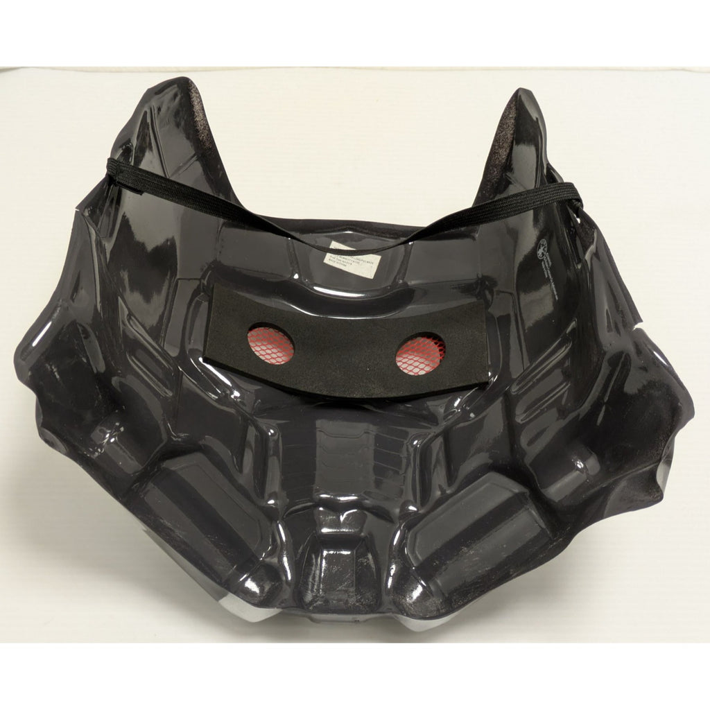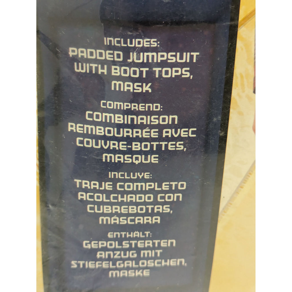 Two tiny cracks in helmet. Some fuzzy and snags on costume.