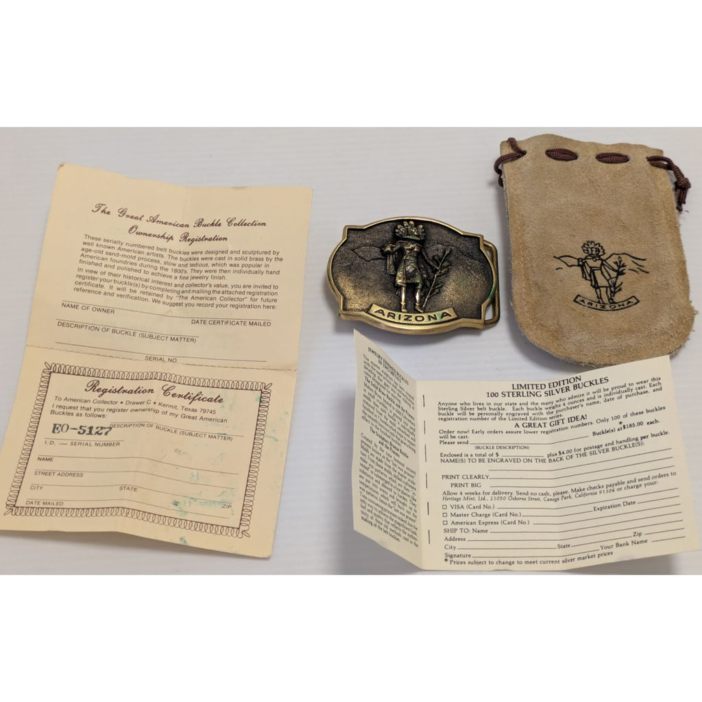 EO-5127 1978 Buckle Arizona J Lunge Limited Edition The Great American Buckle Co. Solid Brass Native American