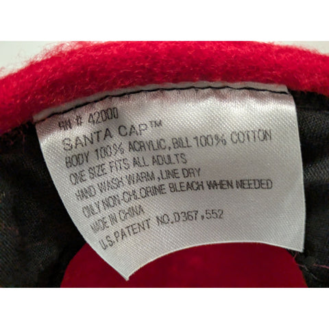 Light pilling on the red fabric. Brim to top of pom = 20.5 inches.