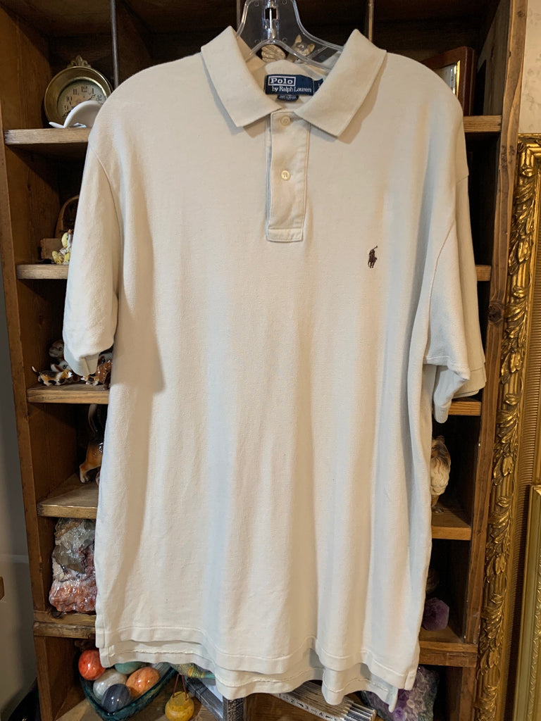 Check out other items for combined shipping!L Polo Ralph Lauren Mens Shirt Top Cream, short sleeve brown pony logo Regular Used