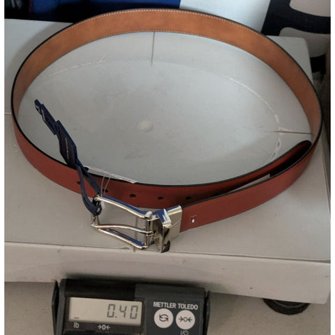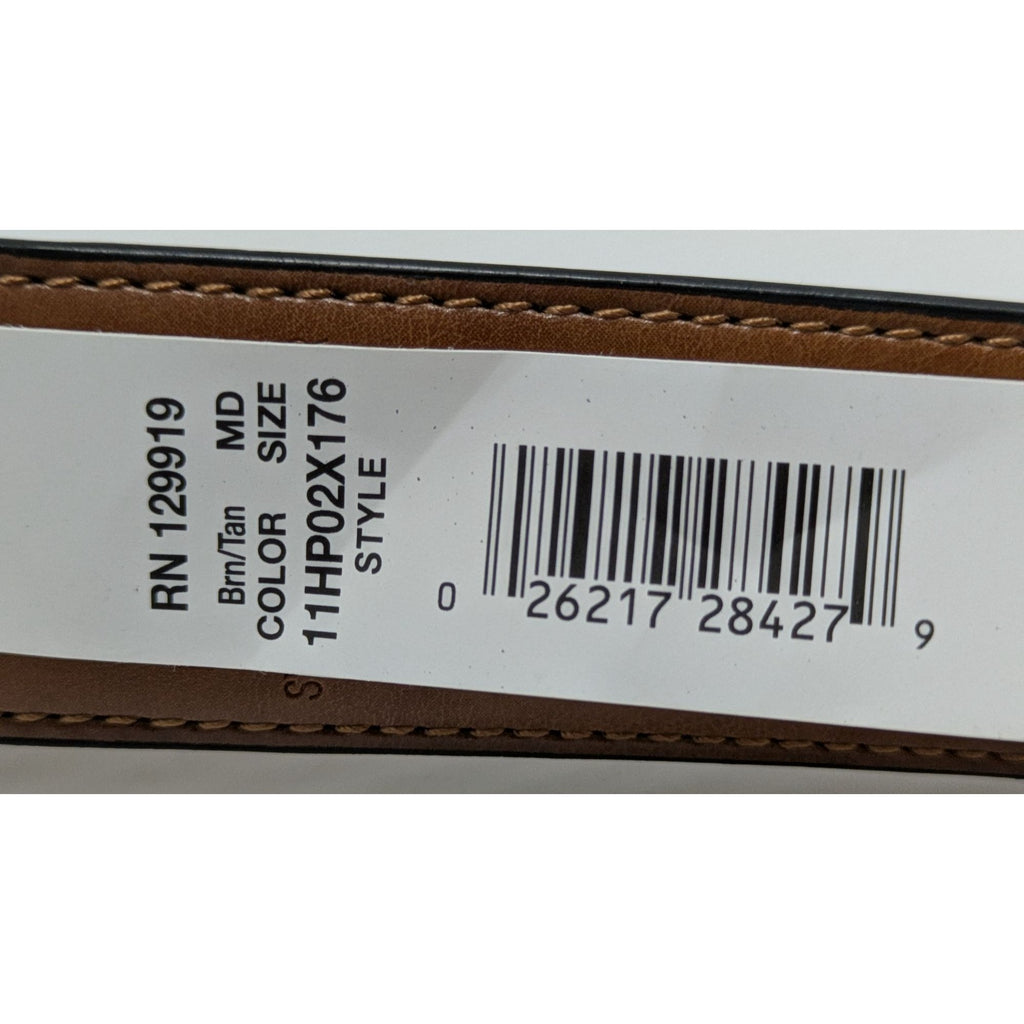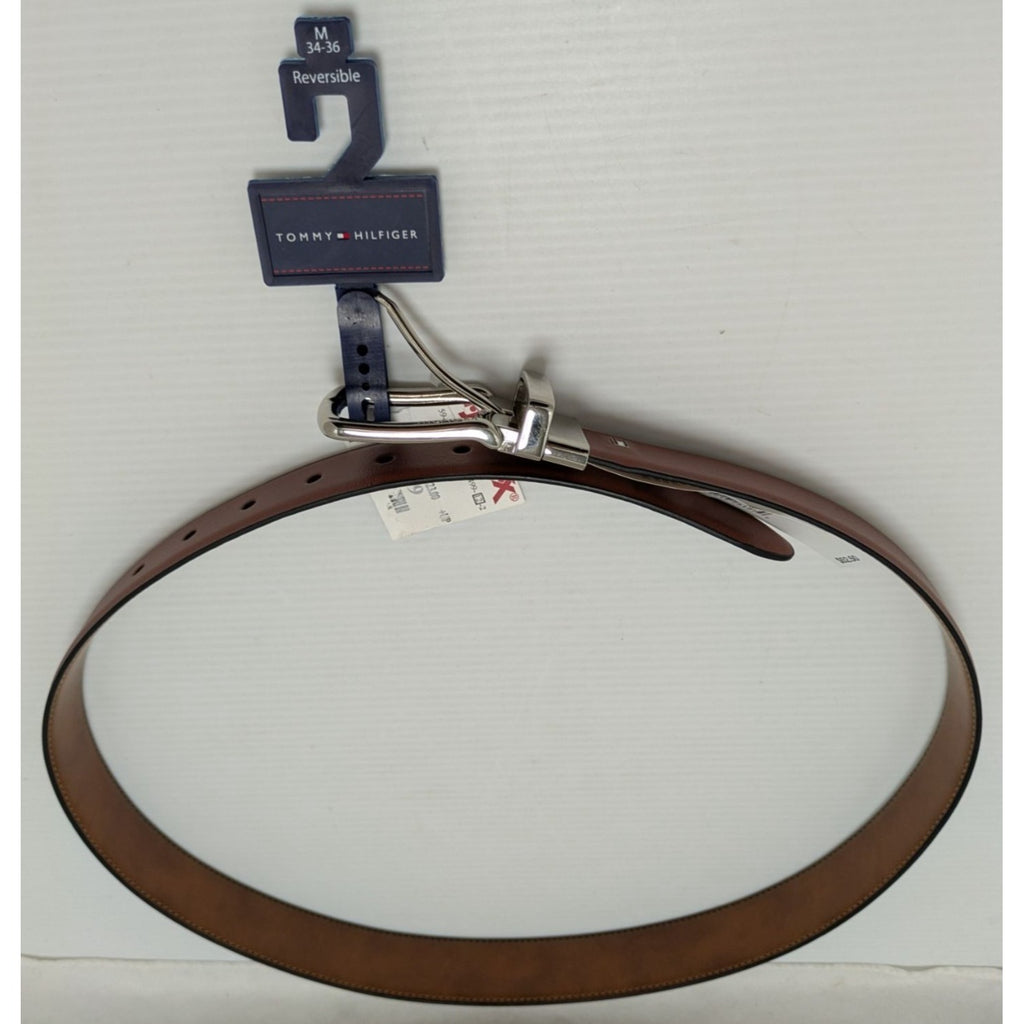 NOS NEW 34-36 M Tommy Hilfiger Reversible Leather Belt Brown/Tan Adjustable Silver Tone Buckle