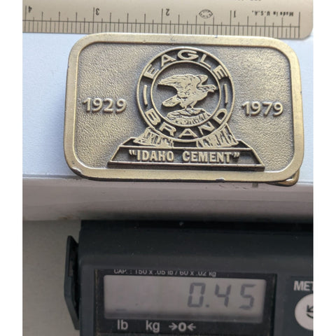 RARE Eagle Brand "Idaho Cement" Brass Belt Buckle 1929-1979 Inkom Hit Line USA Portland