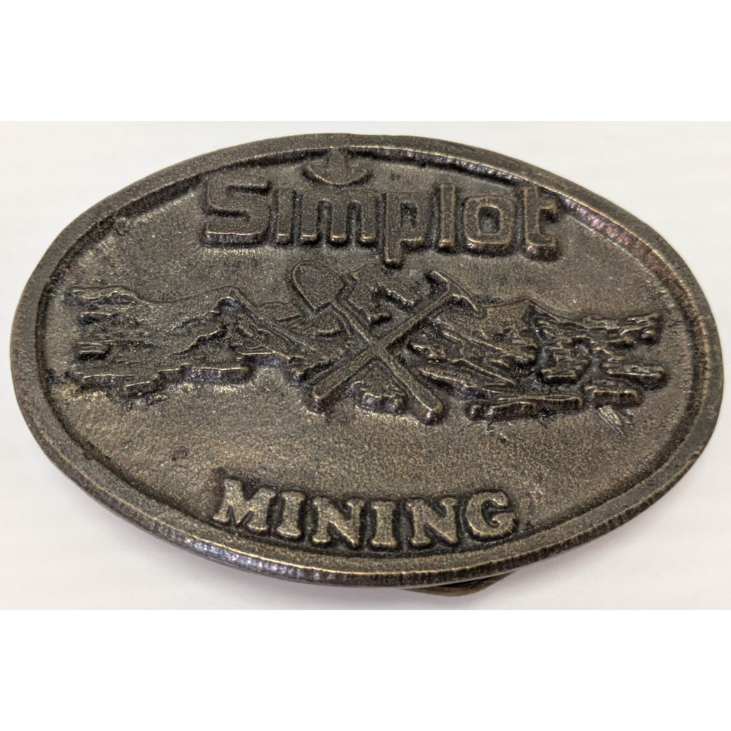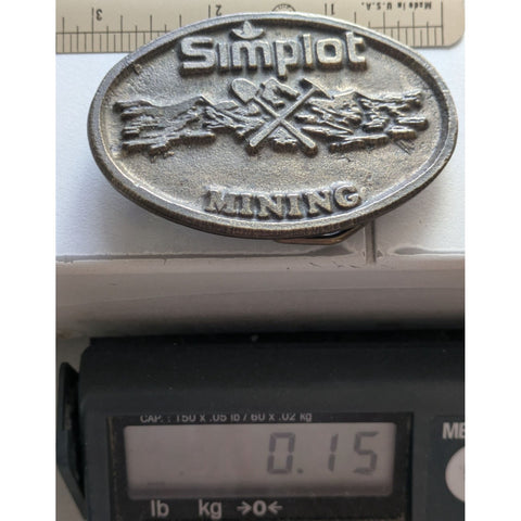 Enhance your wardrobe with this vintage Simplot Mining belt buckle. Its sturdy metal construction and unique design pay homage to the mining industry. An ideal addition for collectors and enthusiasts, this buckle reflects a rich industrial heritage and adds a distinctive touch to any ensemble.