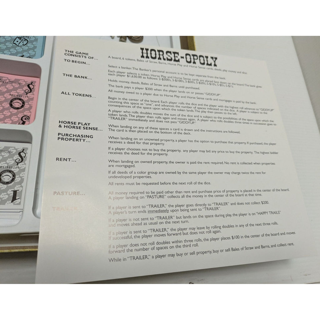 VGC COMPLETE Horseopoly Horse Opoly Board Game Horse Horses Farm Ranch Boardgame Monopoly Instructions