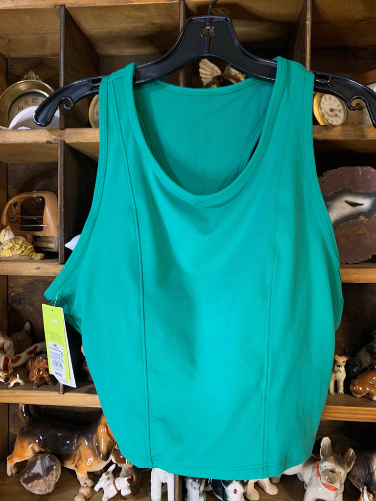 XXL All in Motion Womens Activewear Green sports bra, tank top, crop built-in shelf bra removable pads moisture wicking fits 38D to 42D New