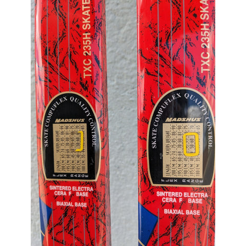 185 TXC 235H Skate Hard Packed Wet Madshus Cross Country Skis Salomon SNS Pilot Bindings 50-60 Flex Norway Biaxial